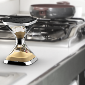 雖然沙漏的精神特質(zhì)值得去繼承,但不可否認(rèn)的是傳統(tǒng)的沙漏在功能上確實具有局限性:只能度量單一的時間段,因此使用率上被極大的限制了。設(shè)計通過類似于相機光圈的機構(gòu)調(diào)整漏沙口的尺進而控制沙子的流速,從而增加了沙漏的使用范圍和使用場景。另外,在兩頭的都配備了LED燈光及蜂鳴器,又進一步地增加了產(chǎn)品的使用場景,加強了設(shè)計的實用性。燈光及蜂鳴器只是通過自身的太陽能電池板供電,為使用者帶來了極大的便捷。